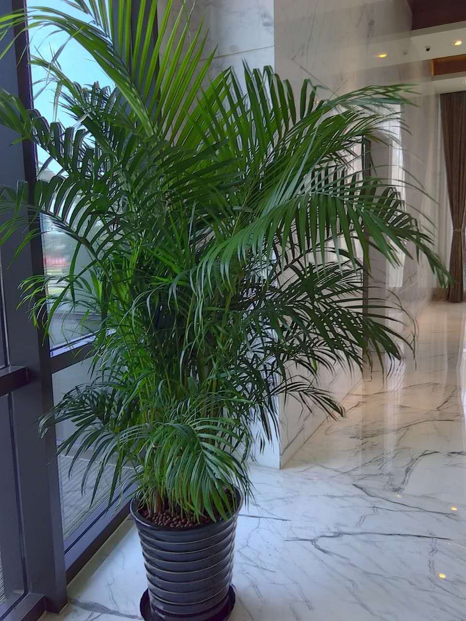養護:散尾葵怕寒冷,怕強光曝曬,以免灼傷葉片。散尾葵喜半陰環境,春、夏、秋三季應遮去50%左右的陽光。生長適溫為20~25℃,冬季夜間溫度應在15℃以上,白天25℃左右較好。若長時間低于5℃,必然受凍害,甚至死亡。在生長季節,需經常保持盆土濕潤和植株周圍較高的空氣濕度。冬季應保持葉面清潔,可經常向葉面少量噴水或擦洗葉面。生長季節每月施肥1~2次。對土壤要求不嚴格,但以疏松并含腐殖質豐富的土壤為宜。盆栽散尾葵可用腐葉土、泥炭土加1/3的河沙或珍珠巖及基肥配制成培養土。每2~3年春季換盆一次,施上基肥。換盆時,應清除枯枝殘葉,還應根據生長情況,剪除過于密集的株叢,以利于信株叢的萌發,保持優美的盆栽姿態。